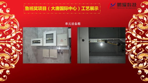 鹏耀科技在工程项目实施方面,严格按照“标准化管理”要求施工,在工程质量和工艺上有极高的标准和要求,为表彰其中表现较为突出的项目,特设立工程质量“鲁班奖项目”。