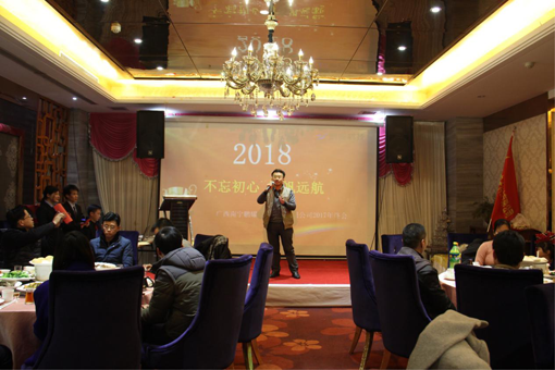 随后周正恩总经理及公司其他领导分别进行致辞,周正恩总经理对2017年公司发展情况作了总结,并对2018年公司发展计划实施做了重要安排。(总经理致辞图片)